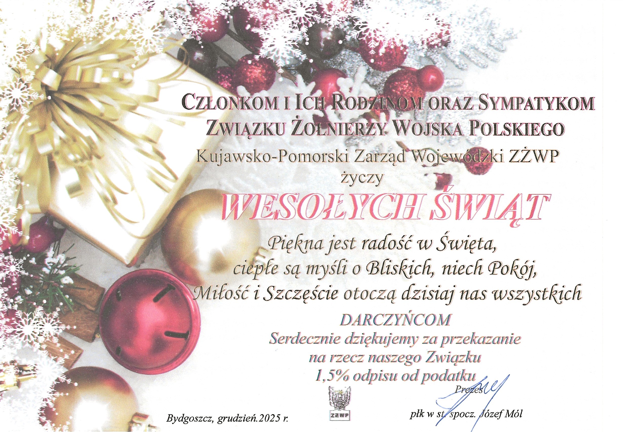 W dniu 17 grudnia 2022 roku odbyło się spotkanie świąteczno-noworoczne członków i sympatyków koła nr 7. Spotkanie rozpoczął Prezes kol. Lech Murawski , który serdecznie przywitał wszystkich członków , sympatyków koła oraz zaproszonych gości , którzy przybyli na naszą skromną uroczystość w osobach : Posła na Sejm RP Magdalenę Łośko Przewodniczącą Sejmiku Województwa Kujawsko-Pomorskiego Elżbietę […]